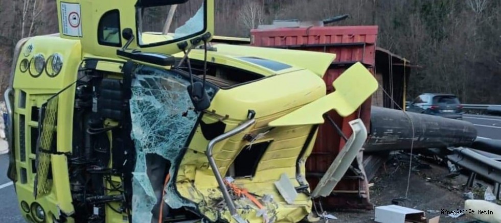 Muhammet Ö. idaresindeki 12 AAB 314 plakalı tır, seyir halindeyken virajı alamayarak devrildi.