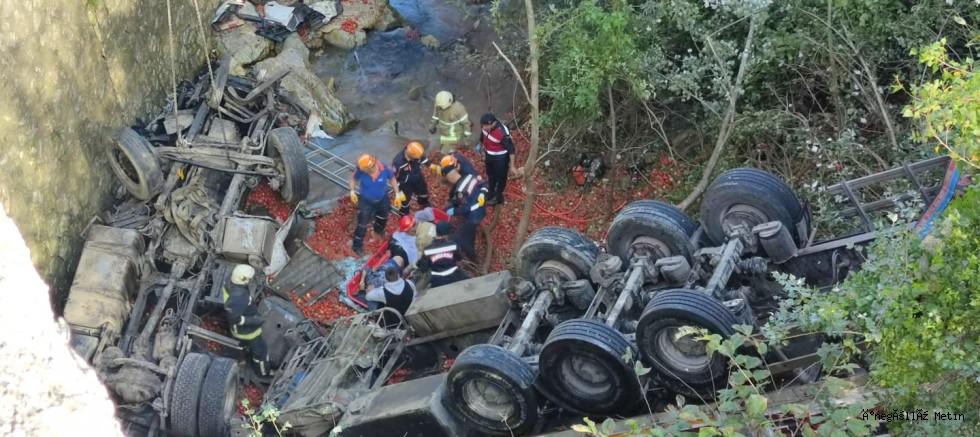 Alınan bilgilere göre Mezit 7 köprüsünde meydana geldi. Mehmet Kol idaresindeki domates yüklü tır, kontrolden çıkarak köprü korkuluklarını da devirerek yaklaşık 20 metrelik yükseklikten uçtu.