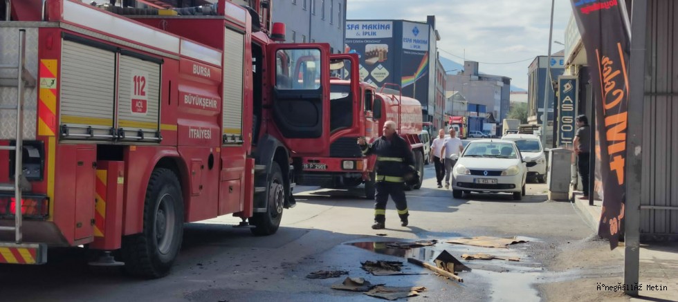 Bir işletmenin yağmur saçağında bulunan poşetlerin tutuşması ile yangın paniği yaşandı.