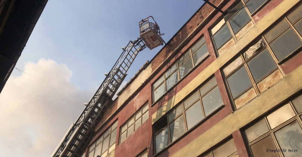 4 Katlı binanın çatı katında çıkan yangın nedeni ile etrafı duman sararken, işyeri çalışanları durumu İtfaiye Ekiplerine bildirdi.