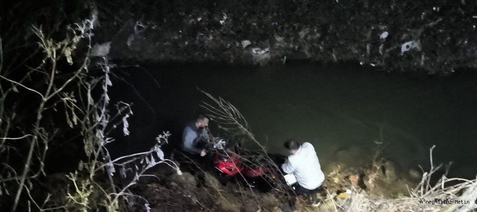 Dereye uçan motorsikleti gece bekçileri halat yardımı ile çekerek dereden çıkarttılar.
