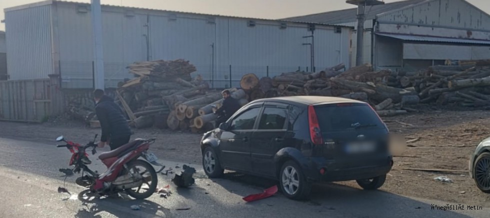 Yol üzerinde seyir halinde olan otomobil ile motosiklet şiddetli bir şekilde çarpıştı.