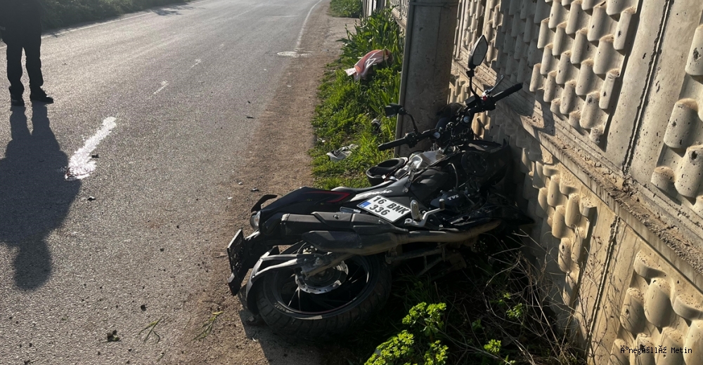 Akhisar mahallesi 1. Malazgirt caddesi üzerinde meydana geldi. Cadde üzerinde seyir halinde olan Tuncay B.(22) yönetimindeki 16 BNK 336 plakalı motosiklet, sürücüsünün kontrolünden çıkarak yolun kenarındaki evin duvarı ve beton direğe çarptı. Ağır yaralanan genç olay yerine sevk edilen Ambulansla İnegöl Devlet Hastanesine kaldırıldı. Yaralının sağlık durumunun ciddiyetini koruduğu öğrenildi. Yaralı daha sonra ambulansla Bursa Yüksek İhtisas Eğitim ve araştırma hastanesine sevk edildi.