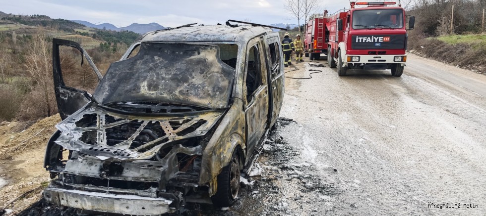 Alınan bilgilere göre olay, Boğazova Yaylası mevkiinde meydana geldi. Yol üzerinde park halinde olan kırsal İsaören Mahallesi Muhtarı İsmail Çıbukçu'ya ait olan 16 AIV 459 plakalı haifif ticari araç, henüz bilinmeyen bir nedenden dolayı alevlere teslim oldu.