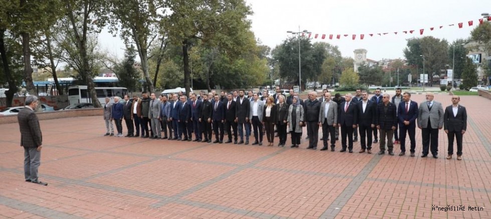Tören, Saygı Duruşu ve İstiklal Marşının okunmasıyla başladı. Ardından Muhtarlar Derneği Başkanı Mesut Çelebi Anıta çelenk sunumunu yaptı.