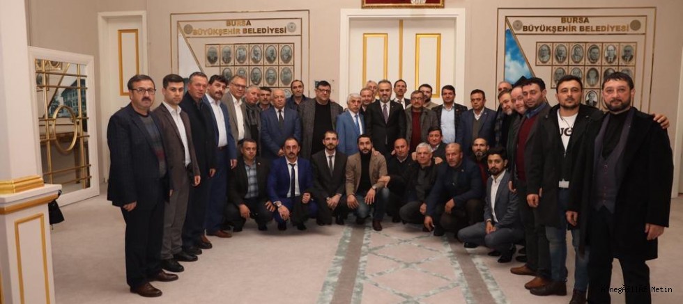 Bursa Büyükşehir Belediyesinin tarihi eski binasında samimi ve sıcak bir ortamda gerçekleşen ziyarette konuşan Yönetim Kurulu başkanı Burhanettin Özdemir;"Öncelikle bizleri kabul ettiğiniz için sizlere çok teşekkür ederiz.Yaklaşık bir yıldır federasyonun kurulma çalışmalarımız vardı.Dört ay önce de resmi olarak kurularak tüzel kişiliğe sahip olduk.Şu an için bünyesinde 15 derneği barındıran federasyonumuz,İnegöl ve kırsal mahallelerinde yaşayan Manav Yörük Muhacir vatandaşlarımızın öncelikle birliğini sağlamak,gelenek ,görenek ,kültür ve folklorunu gelecek nesillere aktarmak,İnegöl'ün tarihi şahsiyetlerini genç kuşaklarımıza tanıtmak,kısacası İnegöl insanına hizmet etmek ve nihai hedef olarak İnegöl dışında da yaşayan bu insanımızın birliğini sağlamak için,komşu ilçe ve illerimizde üye derneklerle daha geniş bir çatıyı kurmayı hedefliyoruz.Daha önce İnegöl de üç dönem belediye başkanı olarak hizmet ettiniz.Rahmetli hocamız Hikmet Şahin'den sonra Bursa'ya Belediye başkanı olarak önce Sayın Cumhurbaşkanımız tarafından görevlendirilmenize,daha sonra aday gösterilmenize ve son olarak da yapılan yerel seçimlerde kazanmanıza biz camia olarak çok sevinmiştik.İnegöl olarak da size yeterli desteği verdiğimize inanıyoruz.Bundan sonra da görevinizde size başarılar diliyoruz."dedi.