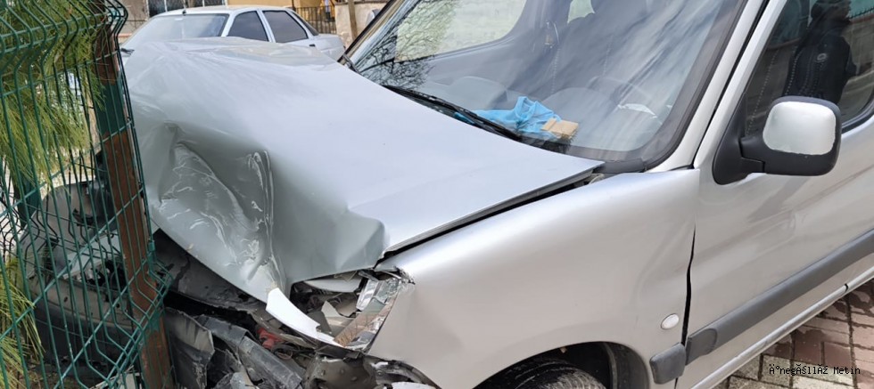 Çarpışmanın etkisiyle savrulan araçlardan servis minibüsü bir evin bahçe duvarına, diğer araç ise parkın tel örgülerine çarparak durabildi.