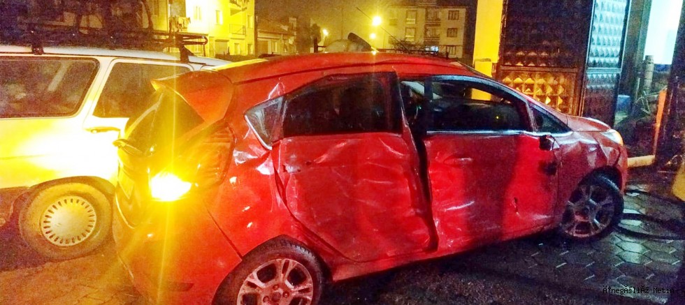 İ Ö idaresindeki 16 S 6222 plakalı servis minibüsü , Orhaniye Mahallesi Naire Çikayeva Anadolu Lisesi yakınındaki dönel kavşakta H S nın kullandığı 16 ABP 715 plakalı otomobille çarpıştı. Çarpışmanın etkisiyle savrulan otomobil, çevredeki bir iş yerinin kapısına çarparak durabildi.