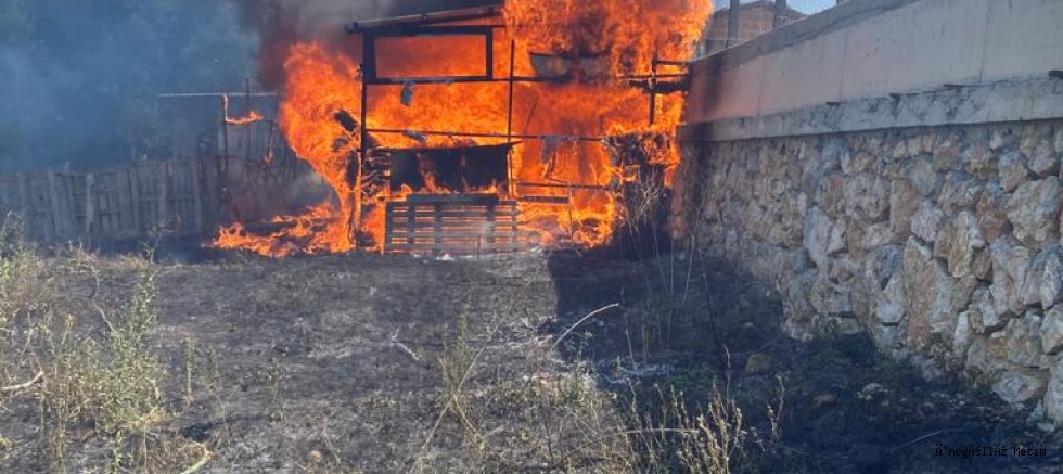 Bölgede bulunan arazide bulunan 2 barakada henüz bilinmeyen bir nedenden dolayı yangın çıktı.