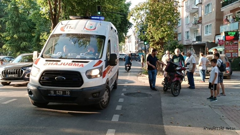 Alınan bilgilere göre Fatma M.idaresindeki 16 AVA773 plakalı otomobil ile Beret Y.(17 )16 AZD 676 motosiklet'in karışmış olduğu kazada çarpmanın etkisiyle yere düşen motosiklet sürücüsü yaralandı.