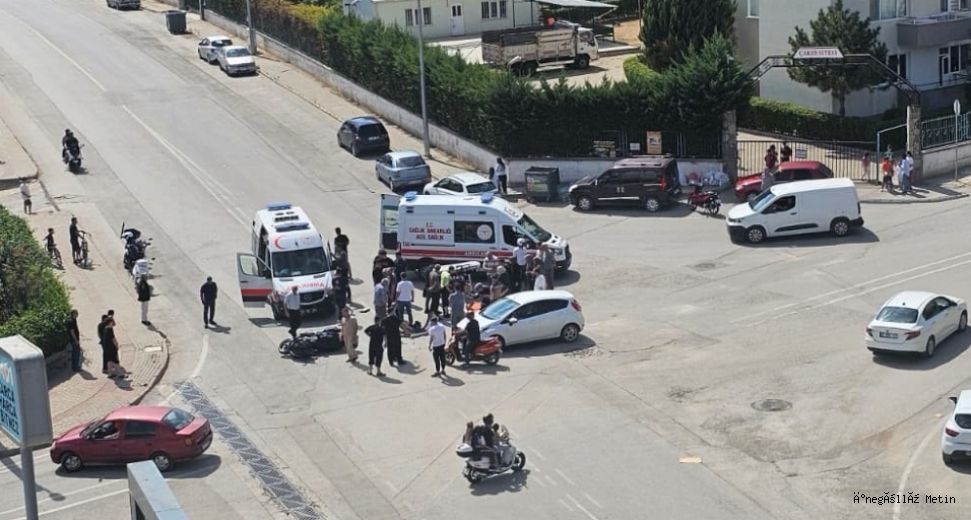 Yunus Emre Mahallesi'nde meydana geldi. Hamzabey Caddesi'nde seyir halinde olan Cemal A. (40) yönetimindeki 48 M 0268 plakalı motosiklet, Esenler Caddesi'nden çıkan Abdulkarim Al N. (45) yönetimindeki 34 NU 5796 plakalı otomobil ile kavşakta çarpıştı. Devrilen motosikletten düşen sürücü ile arkasında oturan eşi Kevser A. (38) yaralandı. Yaralılar kaza yerine sevk edilen ambulanslarla İnegöl Devlet Hastanesine kaldırıldılar. Polis kazayla ilgili soruşturma başlattı.