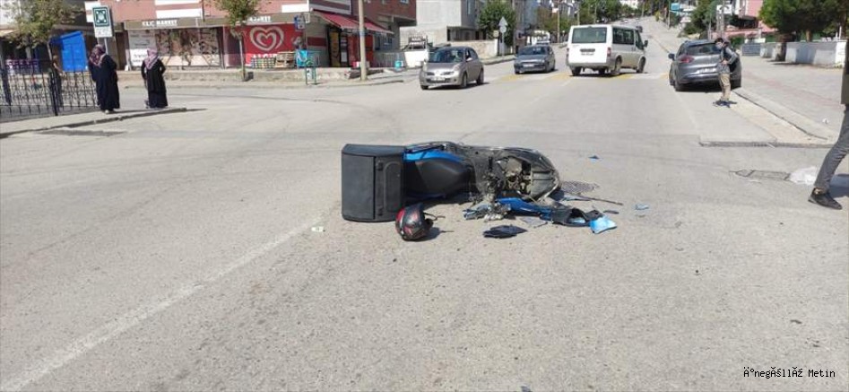 Meydana gelen kazada motosiklet sürücüsü hafif şekilde yaralandı.