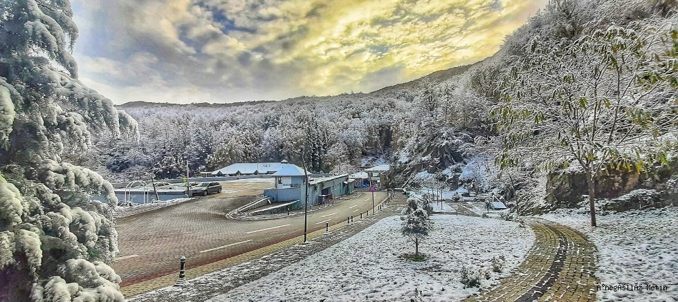 Özellikle İnegöl'ün turizm incisi Oylat'ta da kar yağışı etkisini gösterirken, doğanın tüm renkleri buluşmuş oldu.