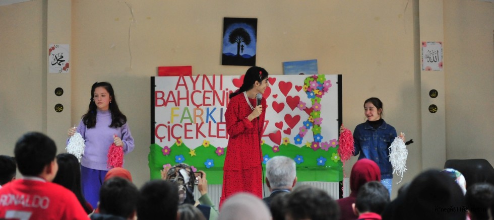 Programda şiir, şarkı ve türküleri seslendiren öğrenciler, daha sonra hep birlikte sahneye çıkarak, ‘Hayat bayram olsa’ şarkısını seslendirdi.