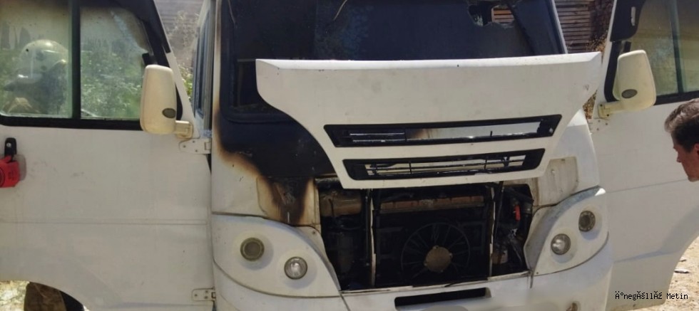 Park halindeki 16 ACM 790 plakalı minibüs, henüz bilinmeyen bir nedenden dolayı alevlere teslim oldu.