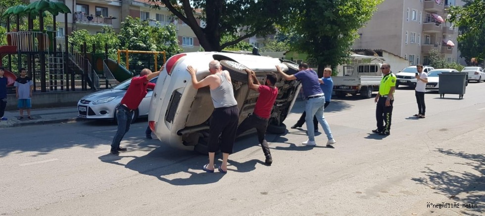 Turgutalp Mahallesi Barboros Caddesi üzerinde park halindeki araca çarpan, otomobil devrilirken, kazada araçlarda maddi hasar meydana geldi.