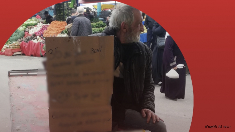 İsminin Şuayip Şen olduğu ifade edilen kişi, seyyar arabası üzerindeki yazılarla pazarda ilgi odağı oldu.