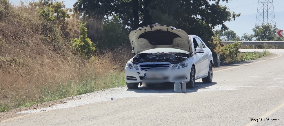 Bursa’dan Kazancı istikametine seyreden otomobilin motor kısmından dumanların yükseldiğini fark eden sürücü, aracı yol kenarına çekti. Kendi imkanlarıyla araçtaki su ve yangın tüpüyle alevlere müdahale eden sürücü, yangını büyümeden kontrol altına aldı.