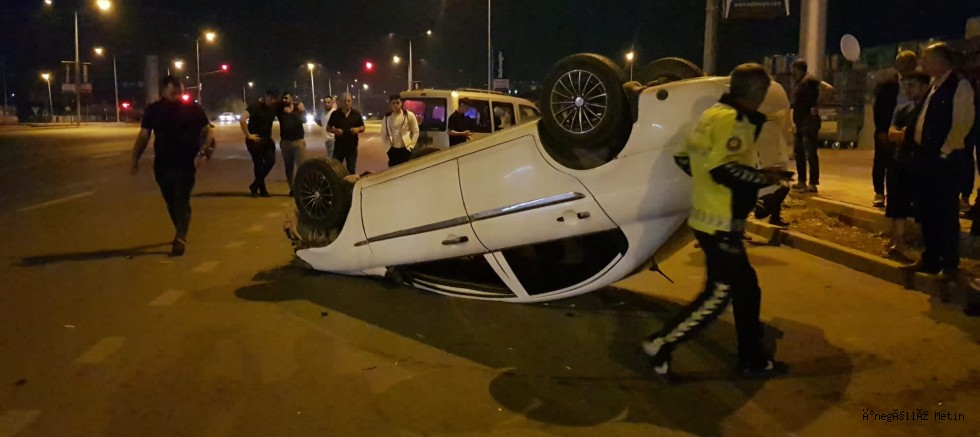 Takla atarak ters duran araçta bulunan Muhammet A. (19) yaralandı.