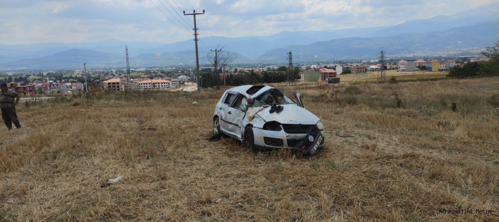 Yaklaşık 100 metre takla atan otomobil, tarlalık alana devrildi.