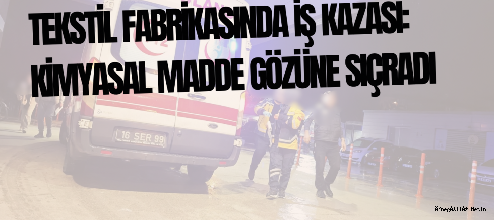 Çalışma sırasında gözüne kimyasal madde sıçrayan işçi, olay yerine çağrılan 112 Acil Servis ekipleri tarafından İnegöl Devlet Hastanesi'ne kaldırıldı. Hastanede tedavi altına alınan işçinin sağlık durumunun iyi olduğu öğrenildi.