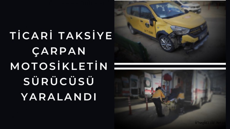 Alınan bilgilere göre kaza Orhaniye Mahallesi Bülbüller Sokak üzerinde meydana geldi. Yusuf F.(59) idaresindeki 16 KFJ 64 plakalı motosiklet, sürücüsünün direksiyon hâkimiyetini kaybetmesinin ardından kontrolden çıkarak, güzergâh üzerinde seyir halinde olan İbrahim B. idaresindeki 16 T 5580 plakalı ticari taksiye çarptı.
