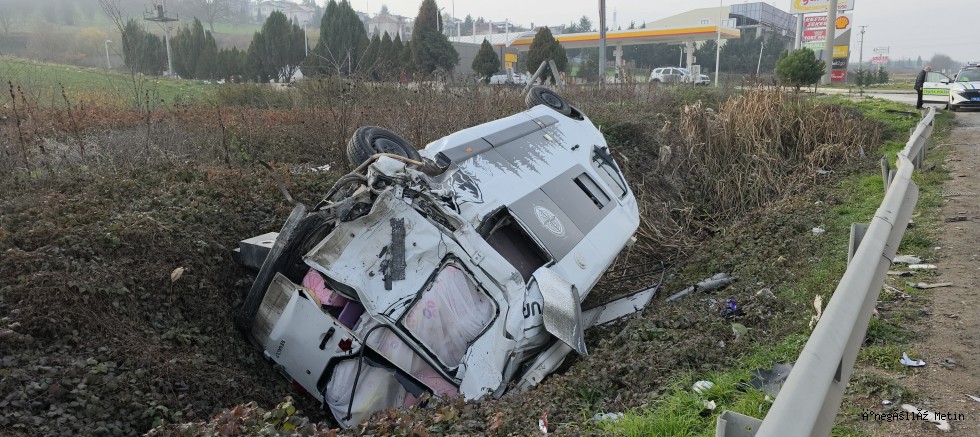 Edinilen bilgilere göre, Bursa’dan İnegöl istikametine seyir halinde olan Yusuf D. yönetimindeki 34 UC 8236 plakalı TIR, iddiaya göre aniden önüne çıkan Sevil S. (61) idaresindeki 16 ANM 336 plakalı karavan minibüse çarptı. Çarpmanın etkisiyle savrulan karavan minibüs, yol kenarındaki şarampole yuvarlandı.