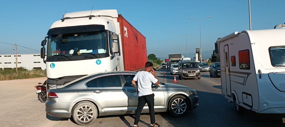 Edinilen bilgilere göre kaza Bursa yolu Akhisar mevkiinde meydana geldi. A.'nin kullandığı 16 ARR 491 plakalı otomobil ile R.Y.'nin kullandığı 16 AYZ 329 plakalı tır çarpıştı. Çarpışmanın etkisiyle otomobilde yolcu konumunda olan S.B. ( 55 ) yaralandı.