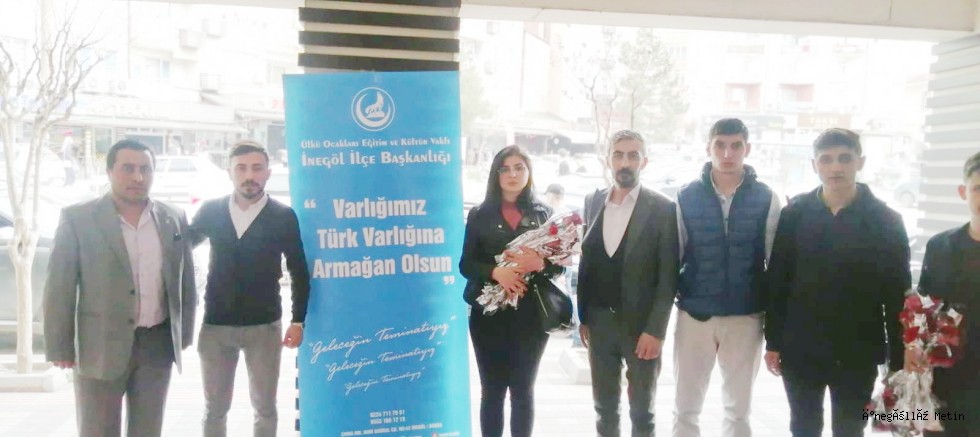Karanfil dağıtımının ardından açıklamalarda bulunan Ülkü Ocakları İnegöl İlçe Başkan Vekili Alper Pakoğlu, “Gerek Türk töresinde gerekse İslam medeniyetinde kadın el üstünde tutulmuş, sosyal hayatın bir çok alanında yer almıştır. Ve kadın, gün olmuş cephede Mehmetçiğe omuz veren Halide Onbaşı olarak çıkmış karşımıza, gün olmuş bizlere semalardan selam veren Sabiha Gökçen. Gün onların günü, annelerimizin, ablalarımızın, bacılarımızın günü. ‘Ve bir ses yükseldi veda hutbesinden kadınlar size Allah'ın emanetidir’ diye buyurmuştur efendimiz Hz. Muhammed (S.A.V). Bu seslenişi derin anlamlar taşımakta ve kadının önemini net bir şekilde vurgulamaktadır. Bugün ise, bu emanete sahip çıkamamaktayız. Öyle ki babaları tarafından öldürülen kızlar, eşi tarafından öldürülen anneler, çocuklarının gözü önünde şiddet gören kadınlar, akşam haberlerinin neredeyse tamamını kaplamaktadır. Bizlerin içinde bulunduğumuz bu durumdan, çıkabilmemizin tek yol öze dönüştür. Biz haberlerde bunları duymayı görmeyi değil, alanlarındaki başarılarıyla gündemimize oturan İrem Yaman'ları, Saadet Yüksel'leri, Asu Özdağ'ları, filenin sultanlarını ve daha nicelerini görmek istiyoruz”