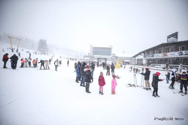 Kar kalınlığının yaklaşık 35 santimetreye ulaştığı bölgede hafta sonunu fırsat bilen günübirlikçiler ve konaklayan tatilciler kayak yaptı.