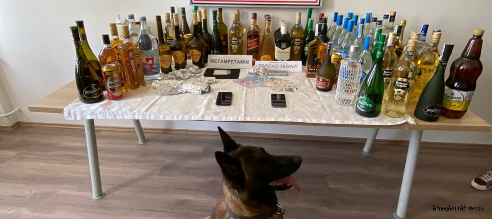 100 gr metamfetamin, 1 adet hassas terazi, suçtan elde edildiği değerlendirilen 845 TL para ve 85 adet çeşitli marka yabancı menşeili ve bandrolsüz alkollü içki ele geçirilmiştir. Söz konusu malzemelere el konulmuş olup, gözaltına alınan şüpheli tutuklama talebiyle adliyeye sevk edilmiştir.