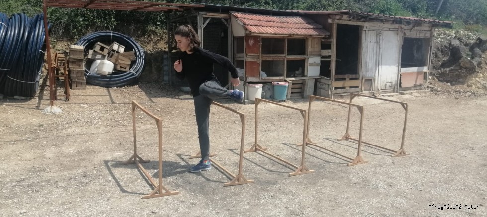 “İnegöl Spor Lisesi 1. Sınıf öğrencisiyim. Daha önce 3000 metre mesafe koşuyordum. Sonra hocam Mehmet Çetin’in destekleri ile 400 metre engelli koşucusu oldum. İnegöl İlçe Stadı’nda çalışmalarımızı sürdürüyorduk. Ama koronavirüs nedeni ile çalışmalarımız yarıda kaldı. Hocamızın bizlere gönderdiği program kapsamında çalışmalarımıza başladık. Sokağa çıkma yasağımız olduğu için de evde çalışıyordum. Sonra köye dedemin yanına geldim. Burada düz koşu yaparak çalışmalarımı sürdürdüm. Dedem de benim çalışmalarımı gördü ve engel olmadığı için bana engel parkuru yapmak istedi. Sonra resmi ölçülerle bire bir olan engel parkuru yaptı benim için. Şimdi dedemin sayesinde çalışmalarımı çok güzel bir şekilde sürdürüyorum”