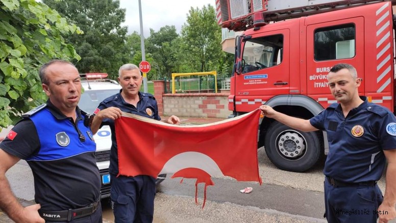 Olay, saat 10.00 sıralarında Hamidiye Mahallesi’nde meydana geldi. Ocakbaşı Sokak'taki bir villanın balkonunda bulunan Türk bayrağının yırtıldığı ihbarını alan Zabıta ekipleri, olay yerine gitti. Villanın sahibinin yurt dışında olduğundan dolayı ulaşamayan ekipler, İnegöl İtfaiyesi'nden yardım istedi.