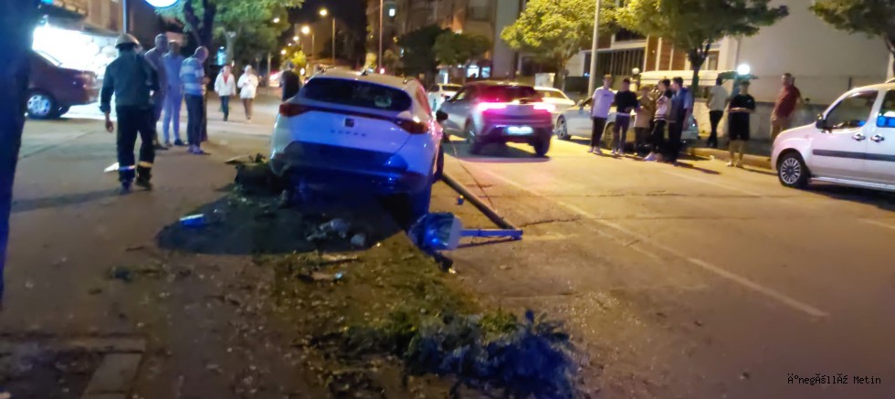 Öte yandan araçlardan biri de bölgedeki aydınlatma direğine çarpınca, direk devrildi.