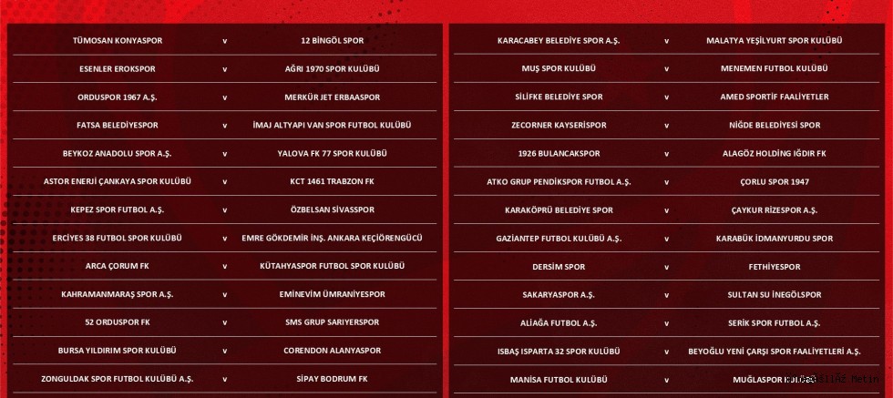 Ziraat Türkiye Kupası 3. Eleme Turu'nda eşleşmeler şöyle: